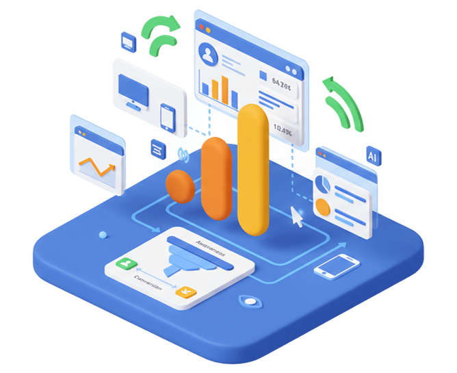 Nós configuramos sua propriedade de forma avançada, rastreando desde a primeira interação até a conversão final, permitindo que você entenda exatamente qual canal traz o melhor retorno.